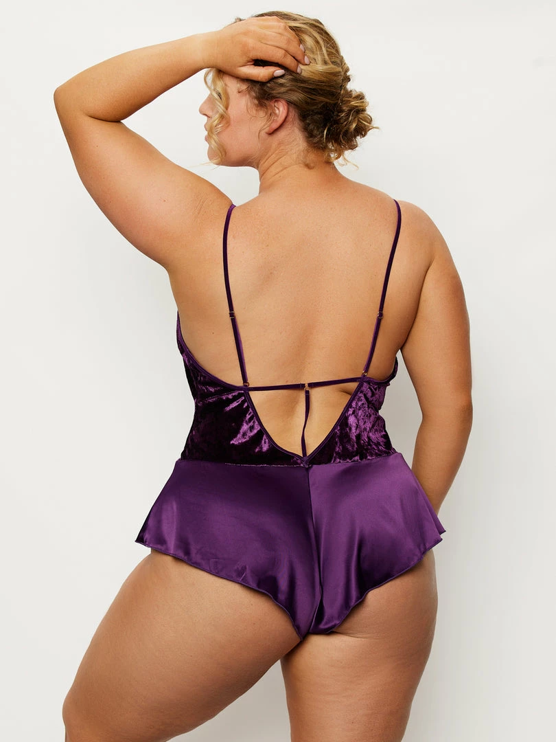 Introducing the Asha Velvet And Lace Teddy, featuring: