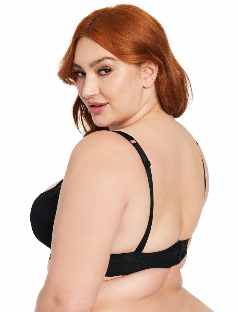 Meet Drew – a sexy, flattering underwire bra for all! Made in a balconette style with lace and underwired cups, you’ll love the peekaboo cutout at the center for a hint of bare skin. Features adjustable straps, back hook, and eye closure.