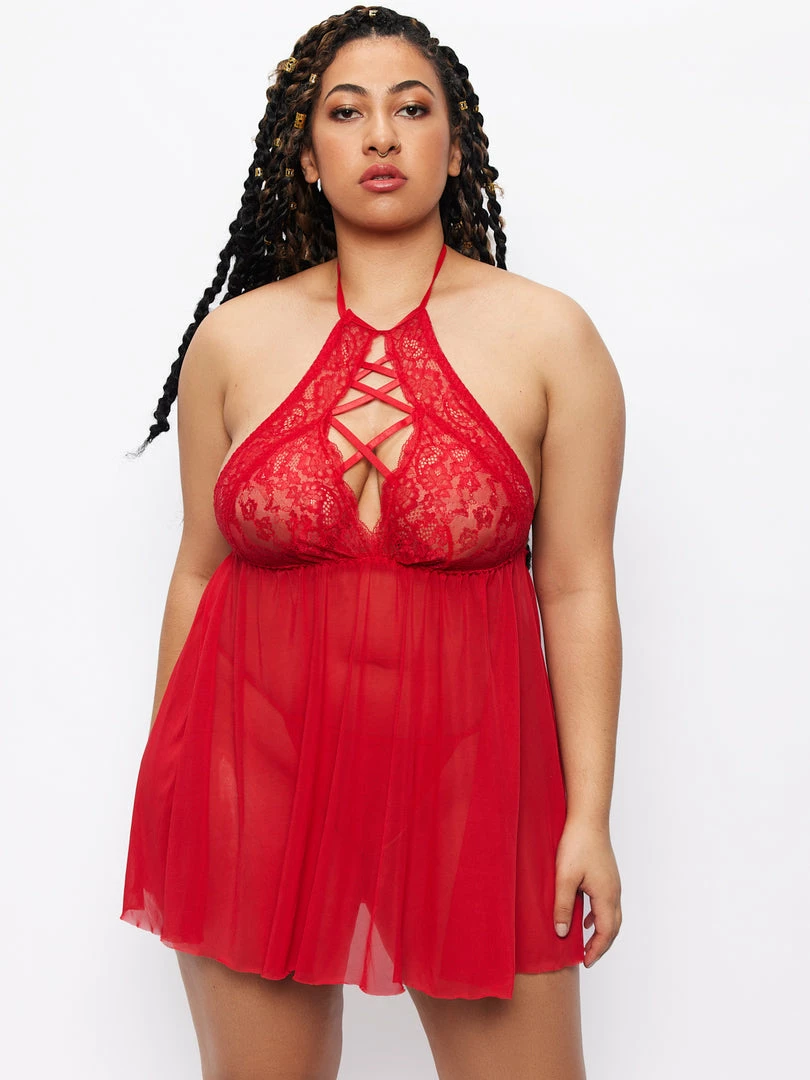 Oh baby, you’ll look like a doll in the Livi Lace Halter Neck Babydoll.