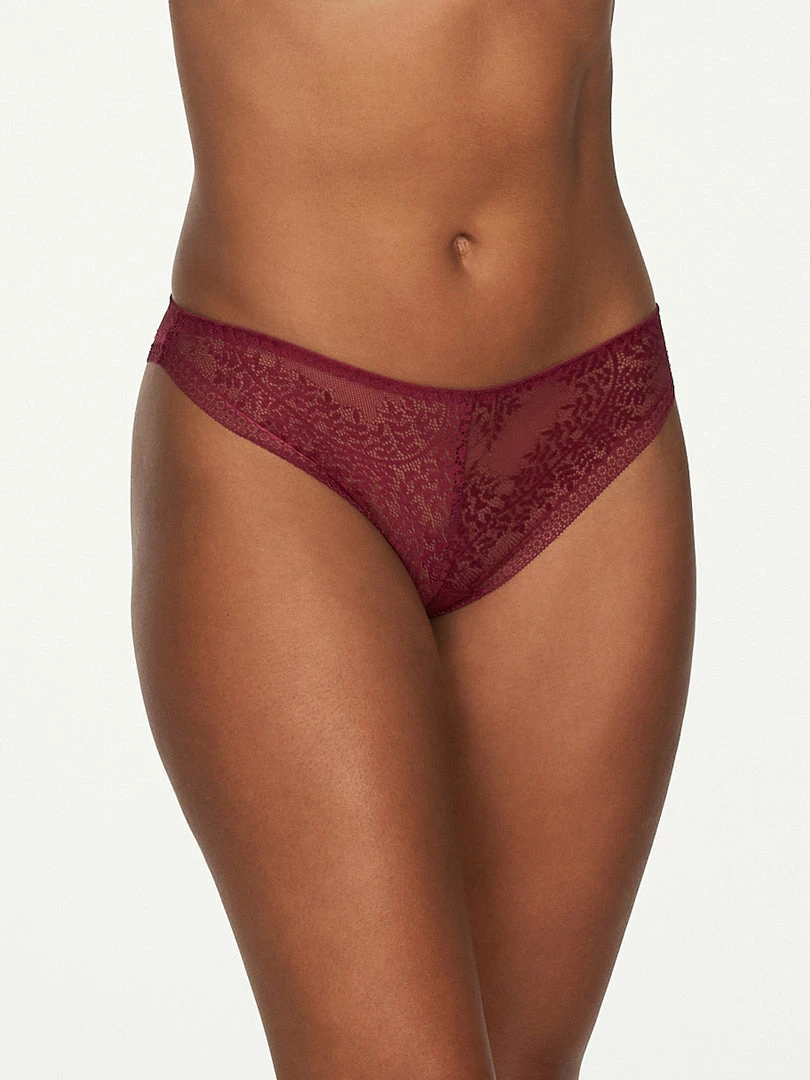 Sheer foliage patterned lace paired with geo lace trim highlights those legs and derrière